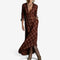 Подходяща за ежедневни и специални събития, роклята предлага предна закопчалка, чиста яка и дълги ръкави, осигурявайки елегантност и комфорт чрез свободен фит и мека материя, която пада нежно и ласкае фигурата.