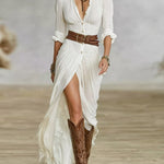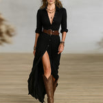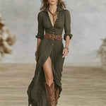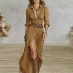 Подходяща за работа, събития или романтични вечери, роклята предлага колан на талията, който оформя силуета и осигурява увереност и стил при всяко движение.