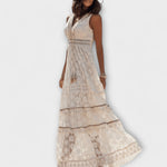Открийте бохемското очарование с роклята Érica! Насладете се на релаксирания елегантен стил на нашата макси рокля, която съчетава плавна A-образна силует с деликатни дантели, създавайки както изискан, така и небрежен вид. Плавният силует и елегантният дантелен модел правят роклята идеален избор за преход от деня към нощта.