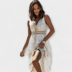 Детайли, които повишават вашия стил: плавен A-образен силует, деликатни дантели, вечен бохо акцент, отличен комфорт.