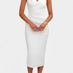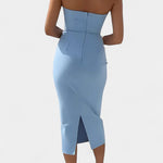 Емина - Рокля без презрамки и гръб е истинският бижу в твоя гардероб. Тази рокля подчертава раменете ти и добавя увереност, като същевременно е изключително удобна и универсална. Независимо дали става въпрос за партита, вечери или ваканционни пътувания, тази рокля винаги е правилният избор!