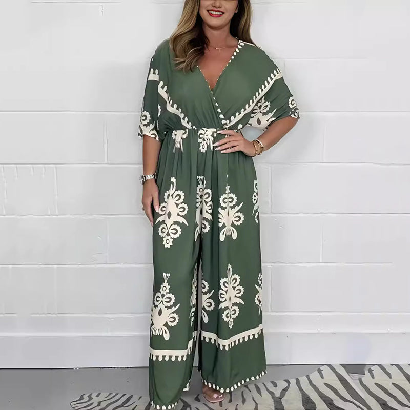 С романтични винтажни принтове, този гащеризон добавя неподвластен на времето чар на вашия ансамбъл, идеален за всякакви поводи.