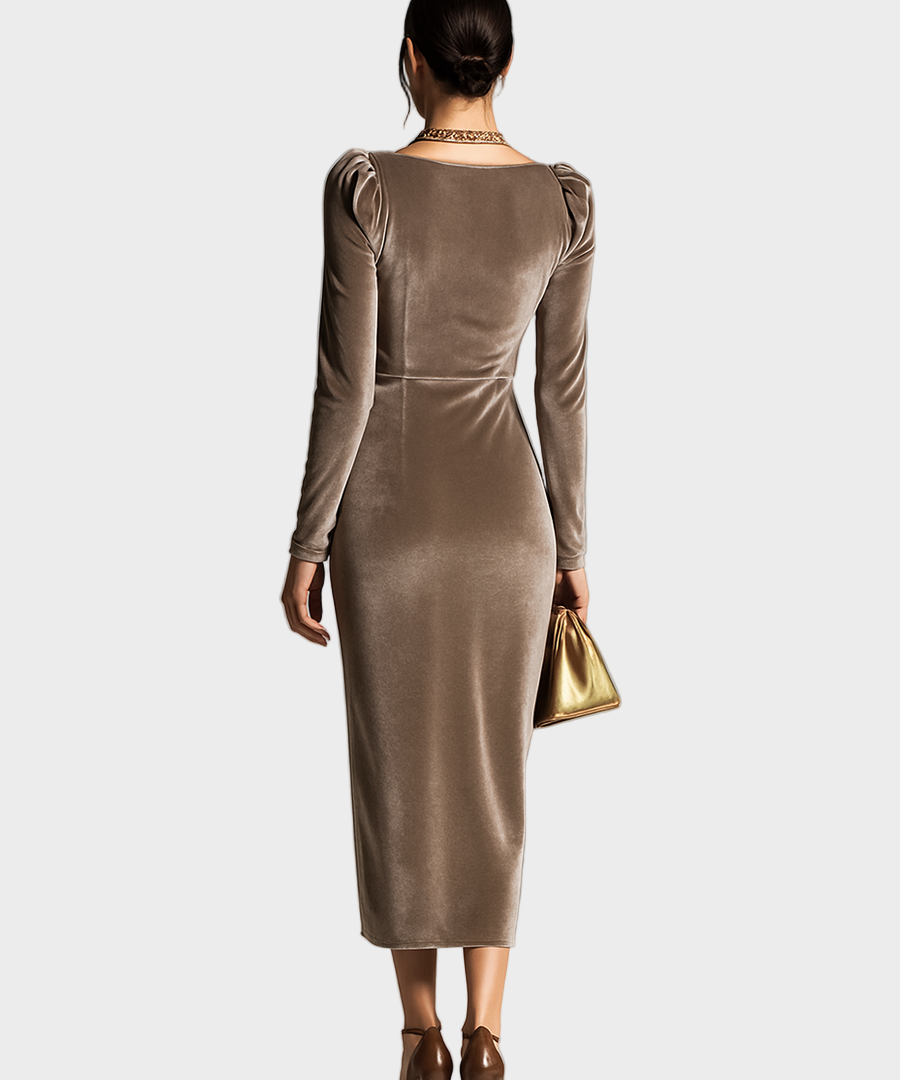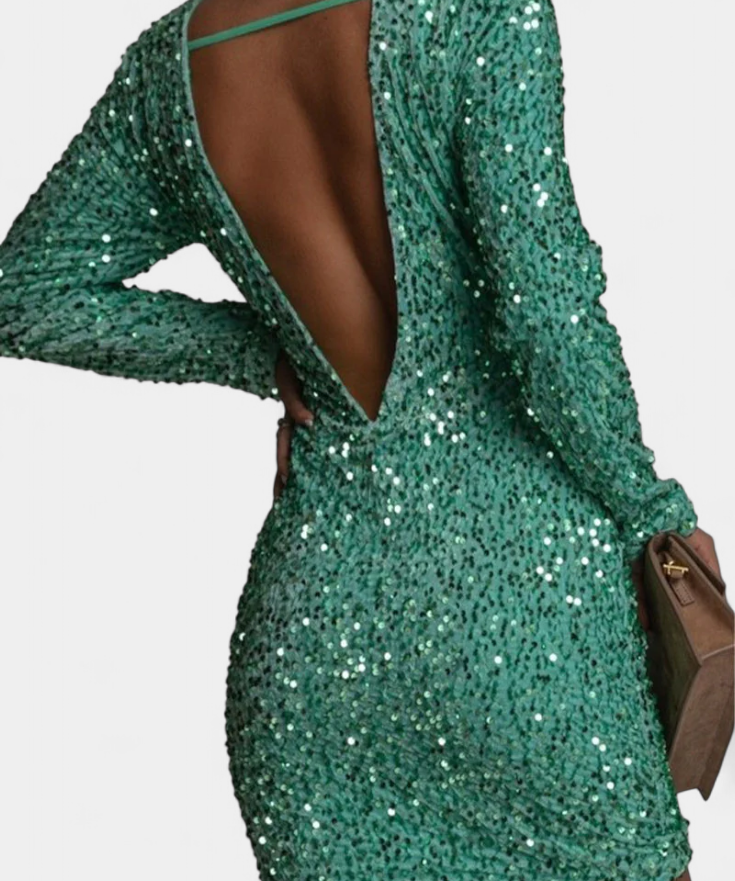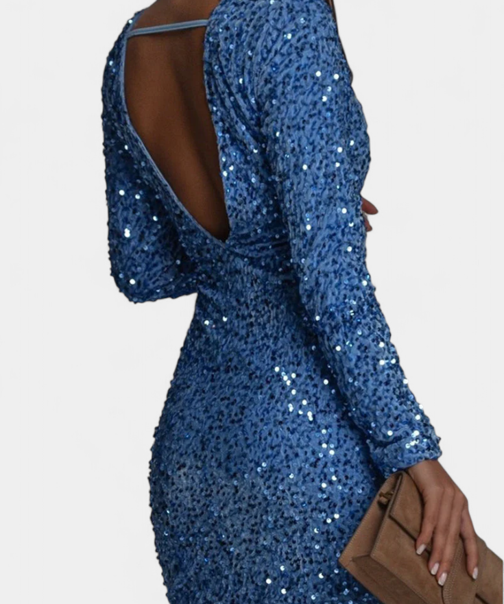 Дражена - Дълга парти рокля с отворен гръб и зимен блясък