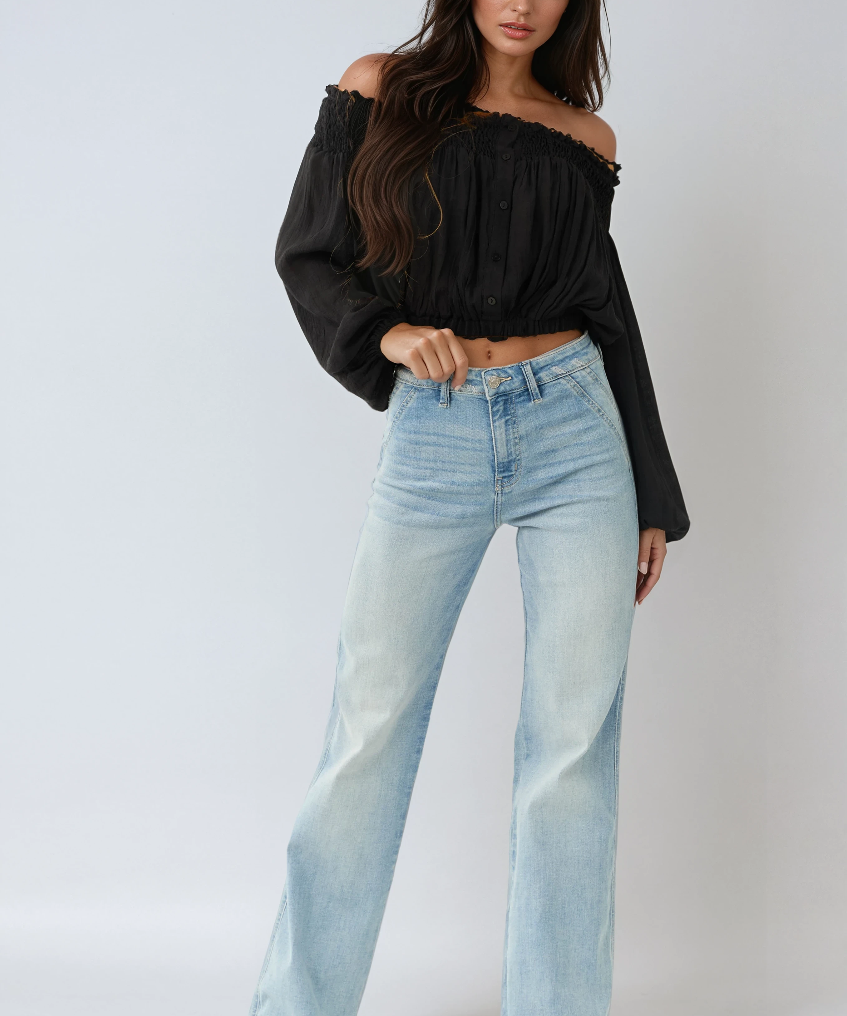 Левелия - Разширени крачоли в светло синьо