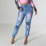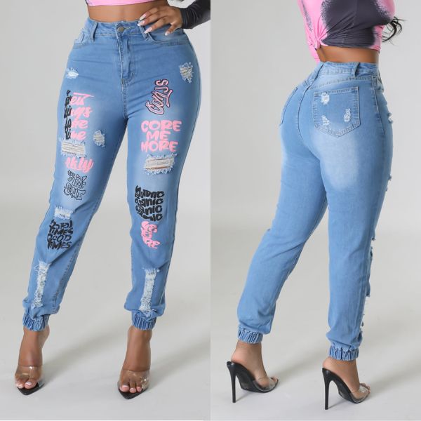 Зардар – МОДЕН ДАМСКИ ПАНТАЛОН е идеалният избор за стилни дънки, които съчетават комфорт и модерен дизайн. С уникална комбинация от щампа и разкъсвания, те предлагат динамичен стил, който привлича вниманието.