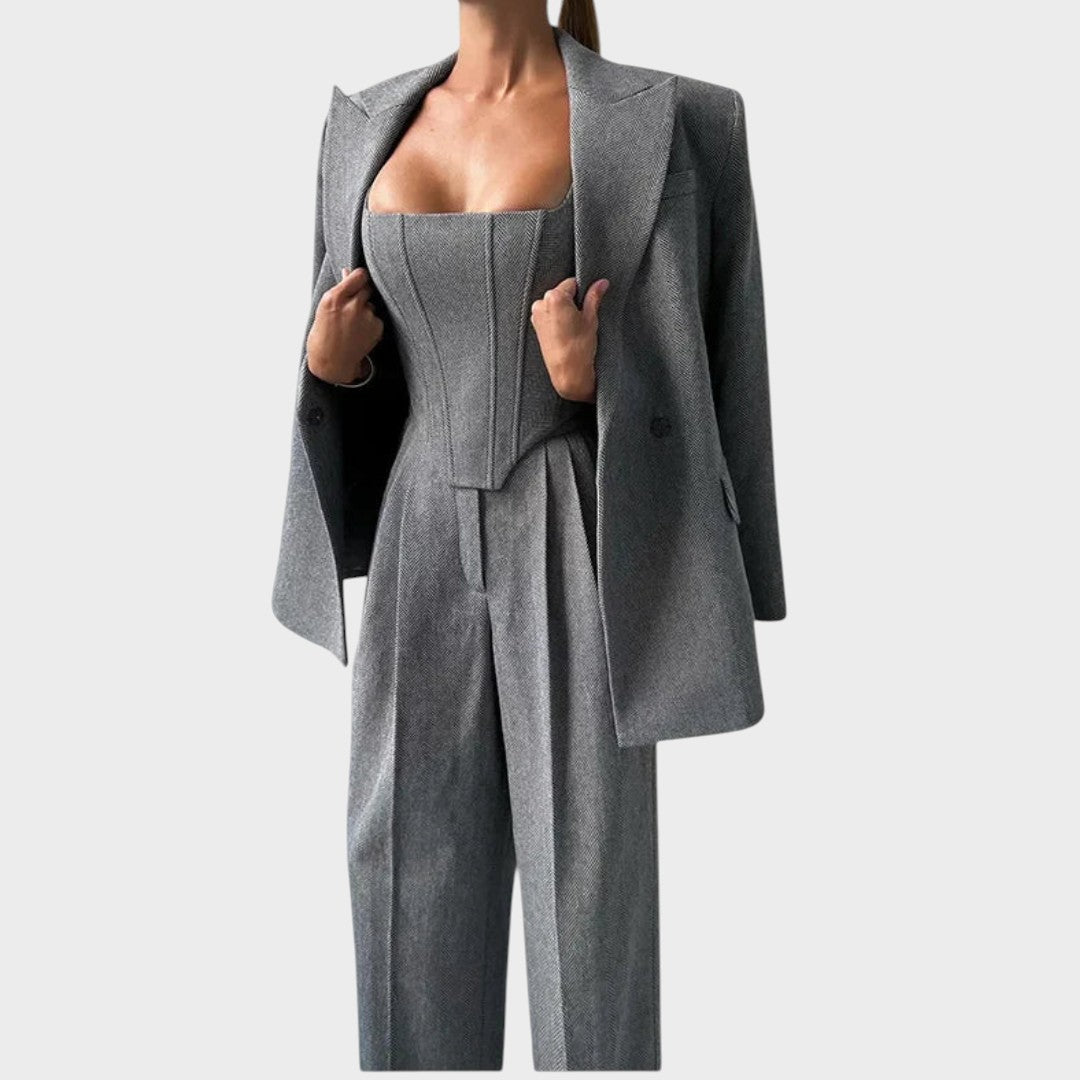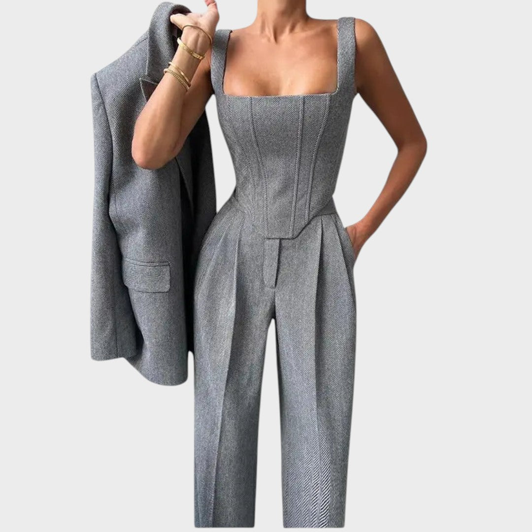 Фелора – Мощен Триделен Костюм е идеалният избор за всеки, който търси качество и стил. С комплекта Каролина Power Trio получавате три ключови части, които осигуряват оптимална производителност и комфорт.