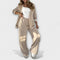 Блейзърът предлага изискан силует, а широките панталони осигуряват свобода на движение. Изработен от висококачествени материали, комплектът е не само красив, но и издръжлив. Лесната поддръжка го прави практичен избор за ежедневието.