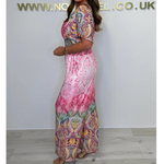 Изработен от дишаща полиестерна смес, той е лек и удобен, идеален за летни дни. С V-образно деколте и връзка с талията, комбинирайте го с любимите си обувки за безупречен вид.